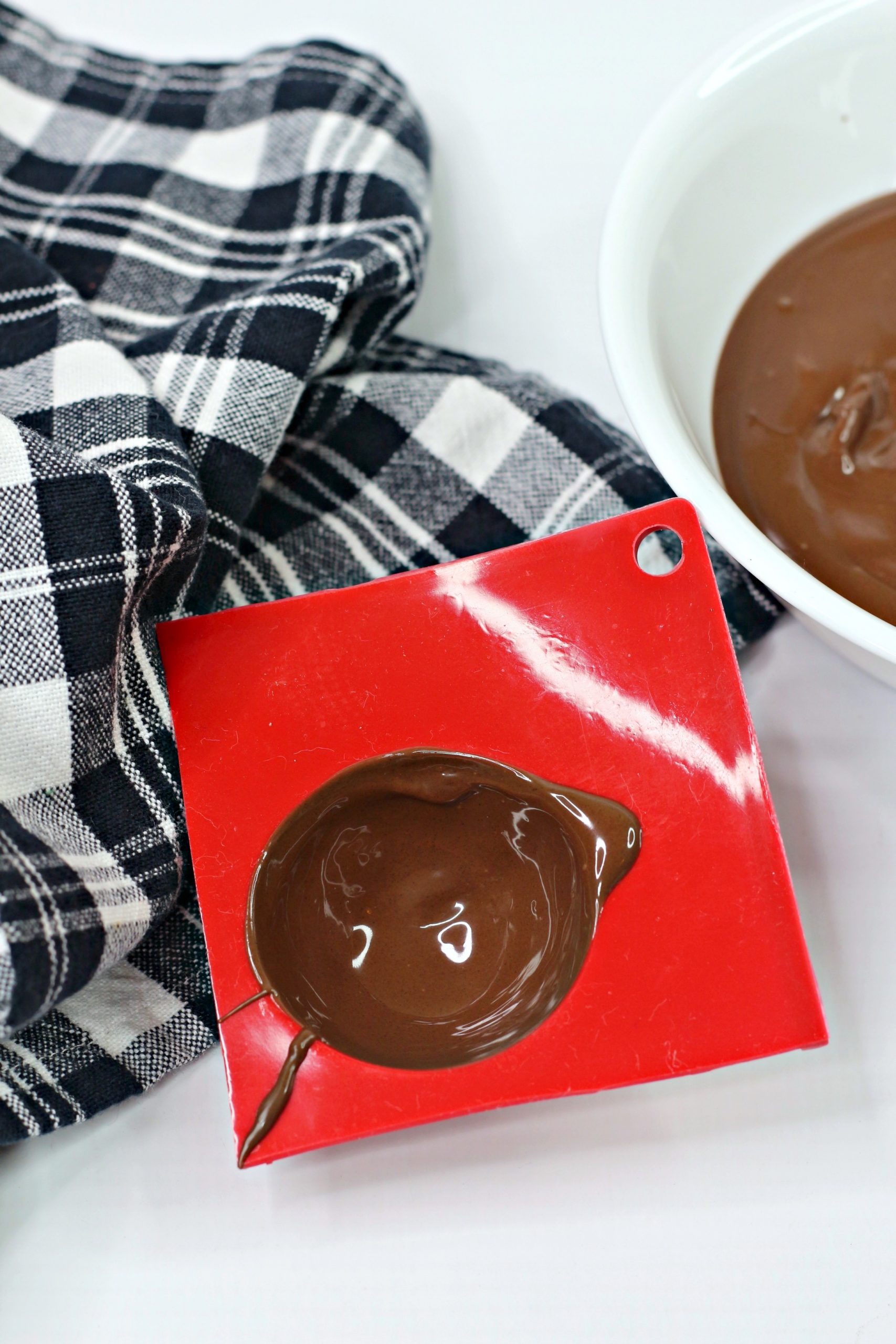 Use a paper towel or clean kitchen towel and wipe the inside of the silicone molds. This will allow your chocolate mold to have a shiny coat on it.