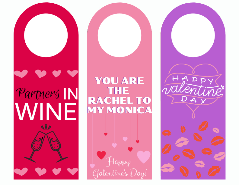 There are a couple of ways you can include these wine tags as part of your holiday. If you’re doing a socially distanced Valentine’s Day, then use them as a gift. Print off the tags, place them on your favorite bottle to gift, and deliver on a loved one’s porch. It’s a fun surprise (especially if they’re in quarantine).