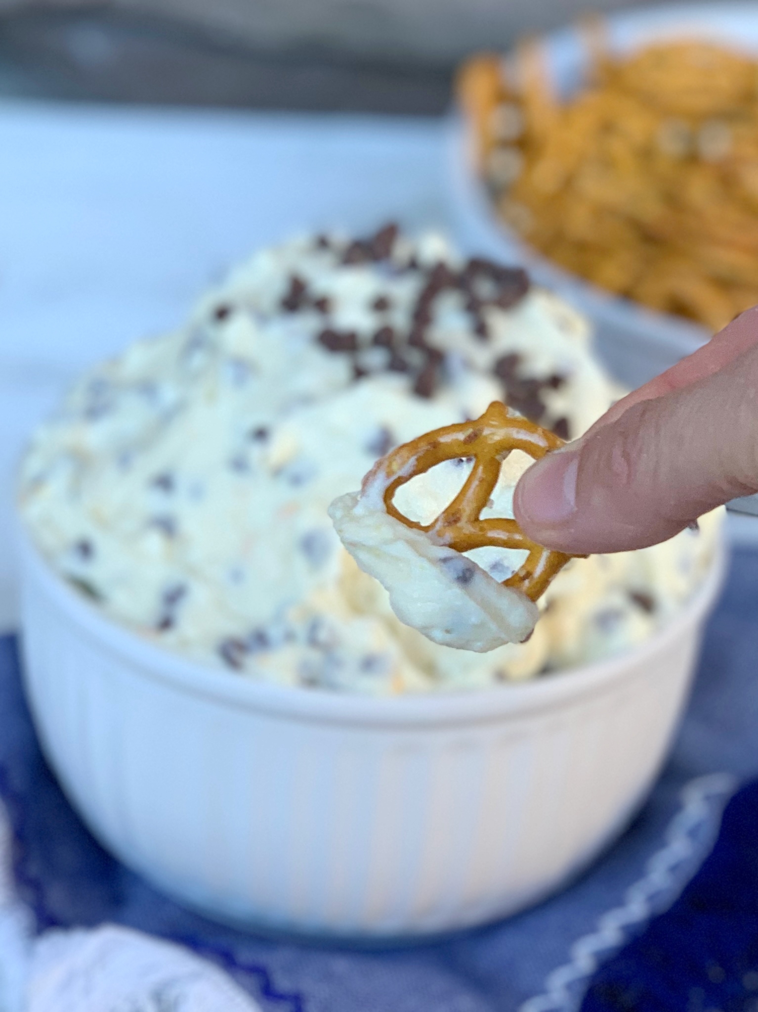I’m all about the dippers! You’ve got to serve some amazing dippers to go with your dessert. I love to add some pretzels for something sweet and some vanilla wafers. It’s a thicker dip, so you want a sturdy dipper. Graham crackers are another great choice. It’s all about personal preference – or what you have in the pantry.